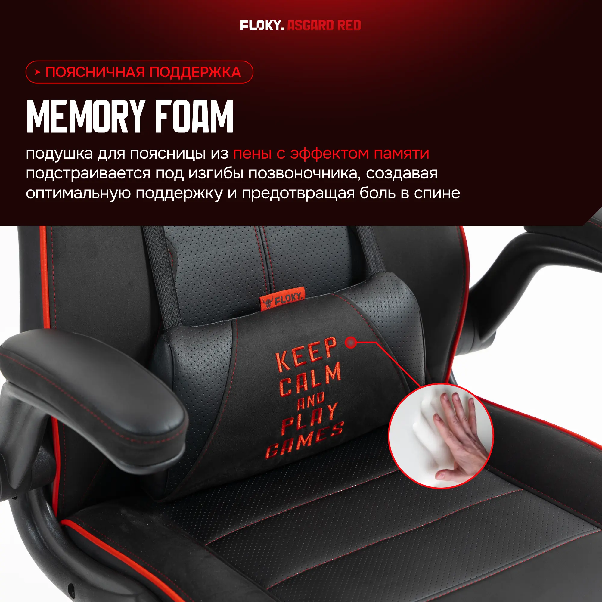 - Поясничная поддержка: подушка из экокожи с эффектом памяти